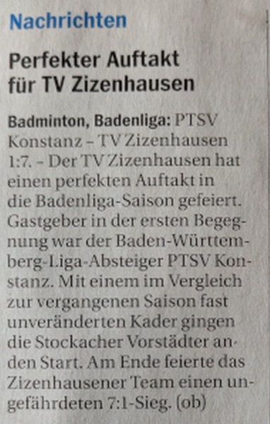 PTSV Konstanz - TV Zizenhausen 1:7